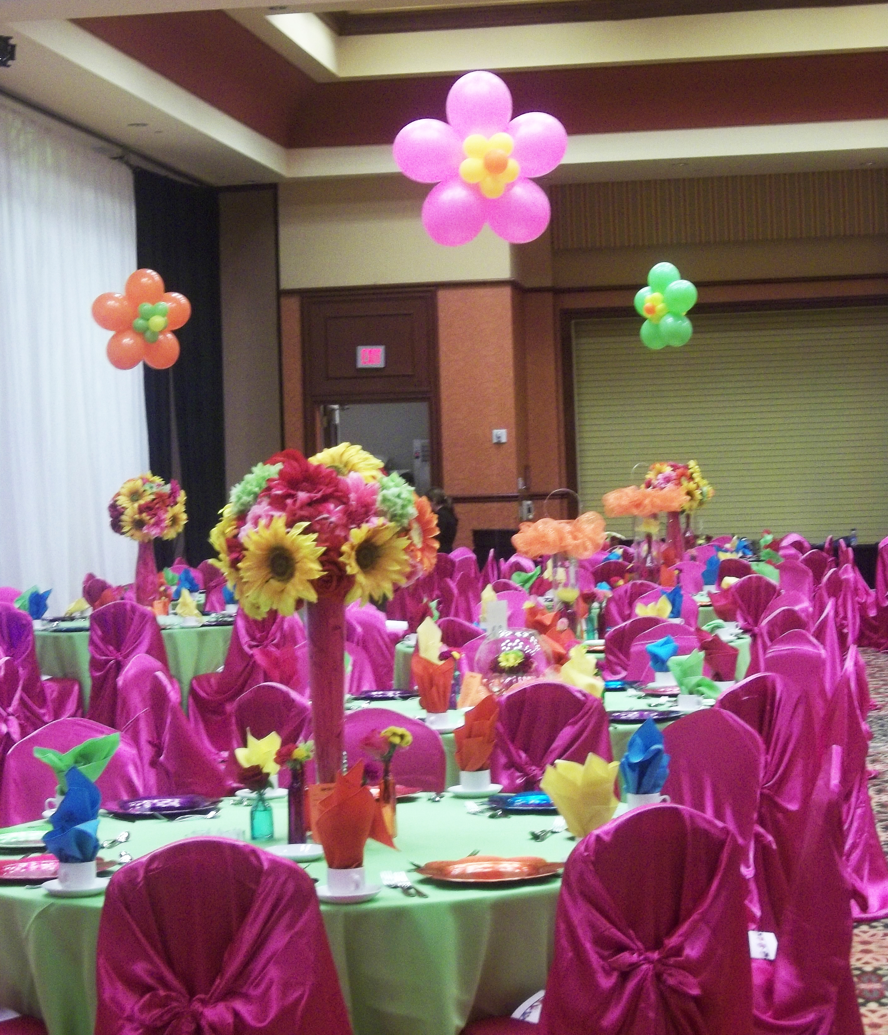 Your celebration is a joyous, but busy time. Perhaps you would like to leave the decorating for your party or reception tables and room to us and enjoy beautiful, festive surroundings without additional hassle! From single balloons to balloon bouquets we have it all!